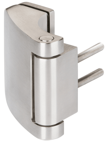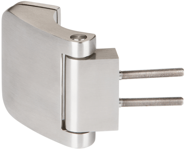 Glastür-Bandpaar 6340 selbstschließend, 3 tlg. (Officebohrung) inkl. Rahmenteil Stahlzarge, max. Türgewicht 60 kg, mit 3 Federn, max. empfohlene Türbreite 960 mm, Oberfl. 60 (Edelstahl matt)