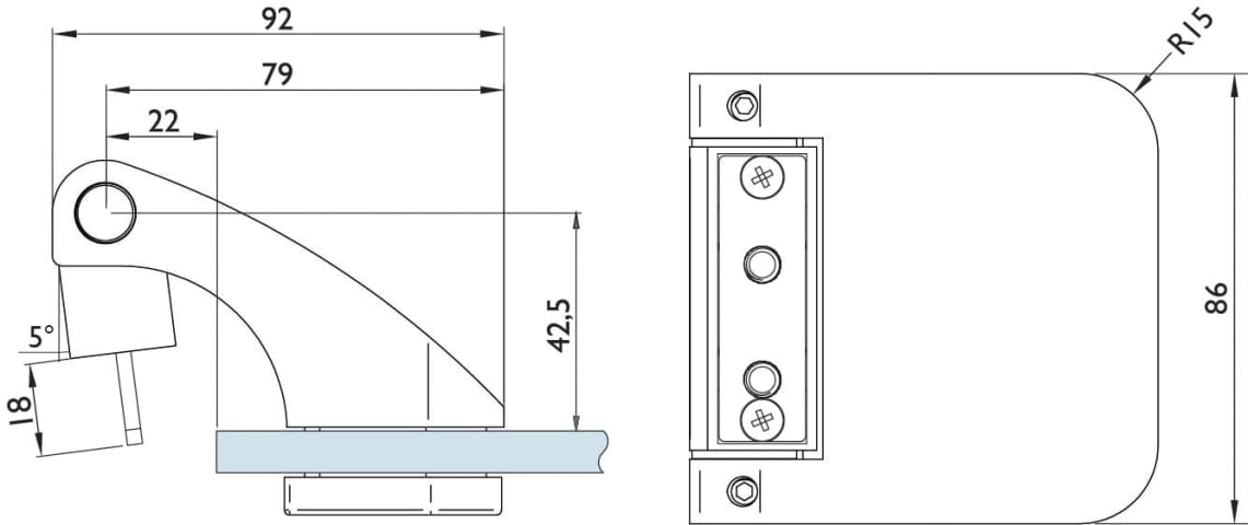 Hermat Glastürband 6340/3/FEDE/R.SZ,3tlg,rund,edelstahl matt