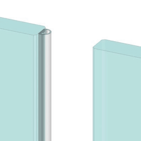 Glastür-Dichtung 4 x 6 mm breit zum Aufkleben, Rolle à 12 lfm. , aus Thermoplast, für Glasstärken von 8-14 mm, für Glas-Schiebetüren, transparent