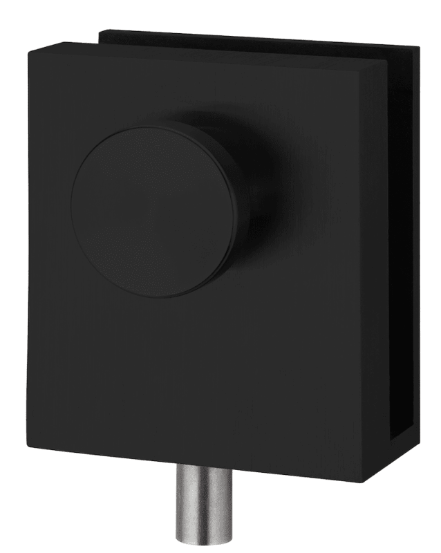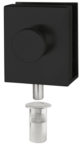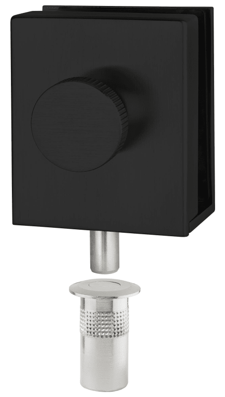 Glastür-Feststeller-Set, bestehend aus 1 Stück Glastürfeststeller, Aufnahmebuchse mit Federverschluss, schwarz, passend zu, Oberfl. 74 (Classic Black, ähnl. RAL 9005)