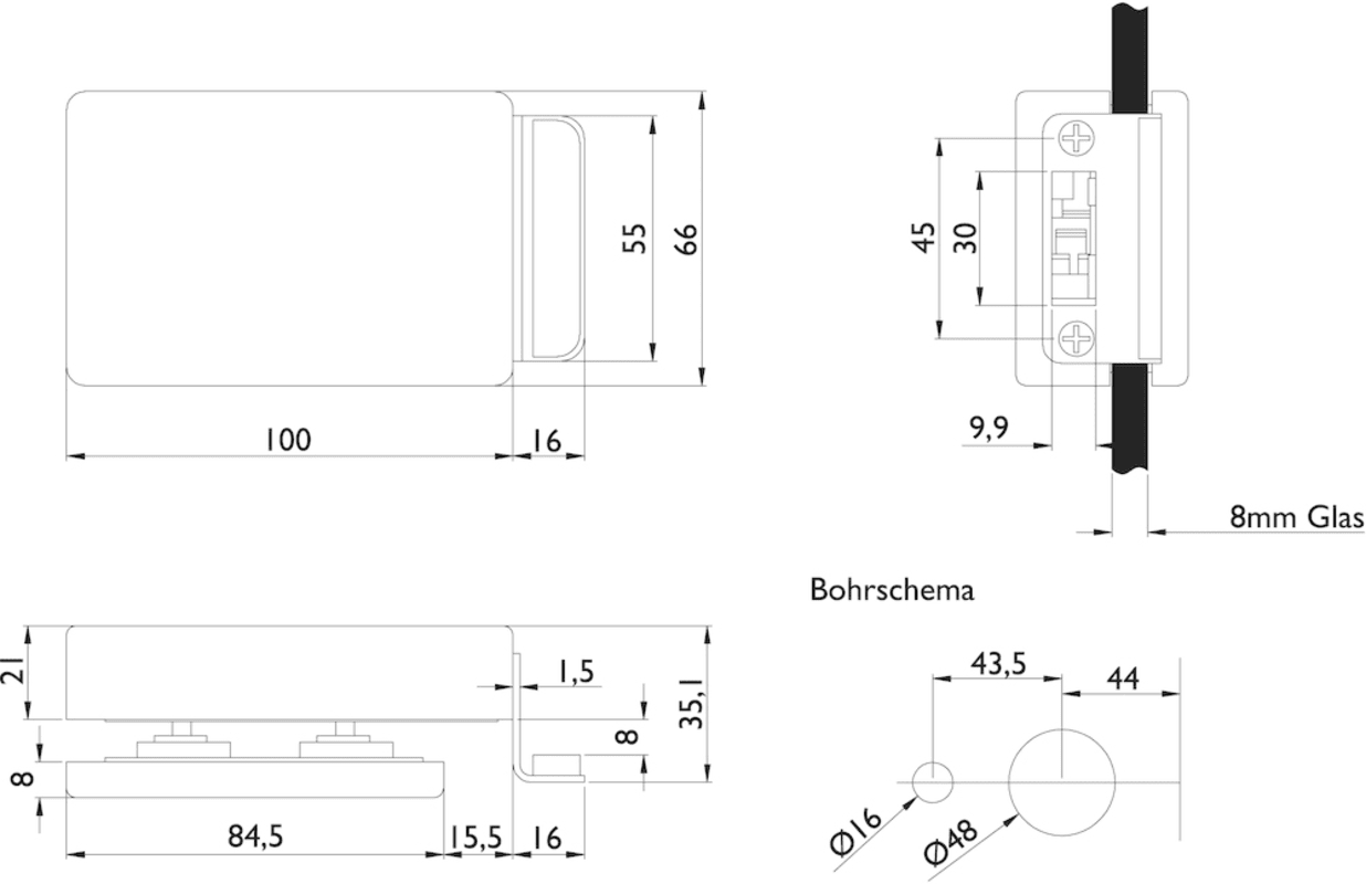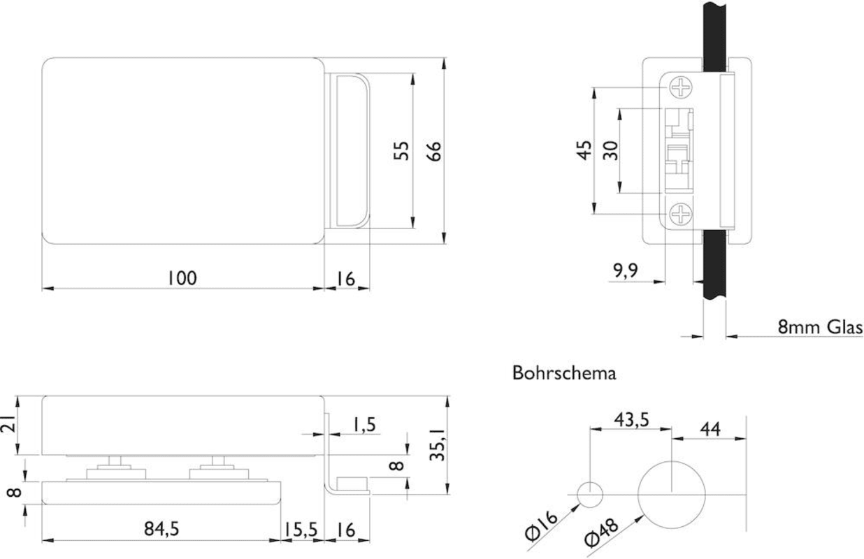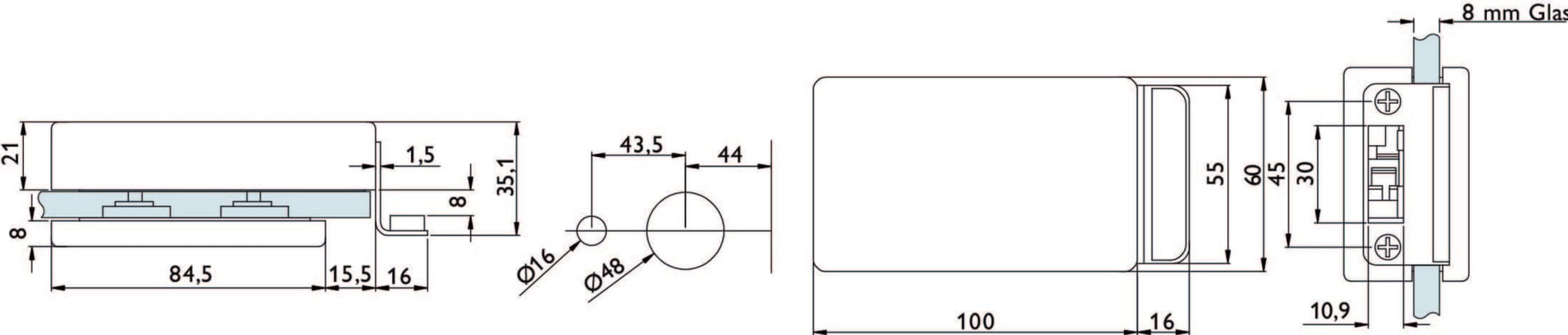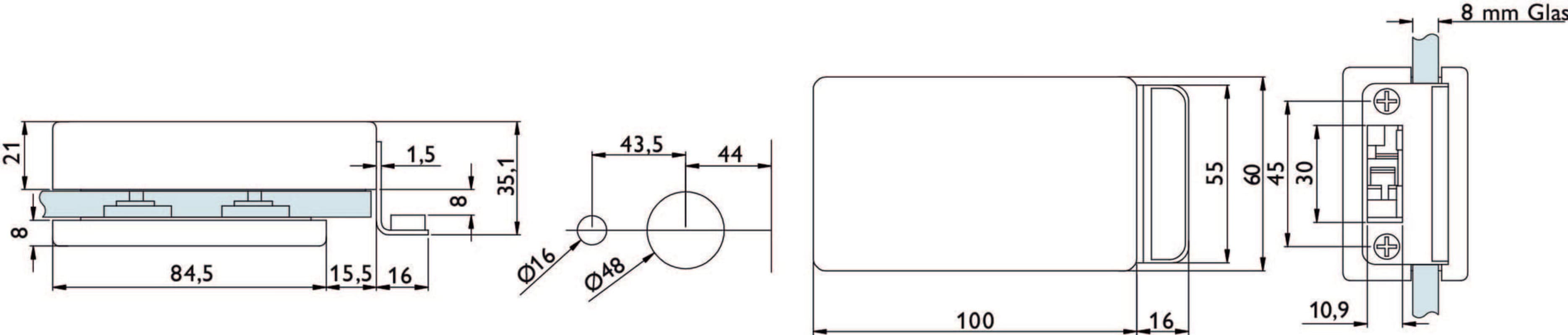 Glastür-Gegenkasten 6094 GK - Arco, mit Anschlagwinkel, Oberfl. 60 (Edelstahl matt)