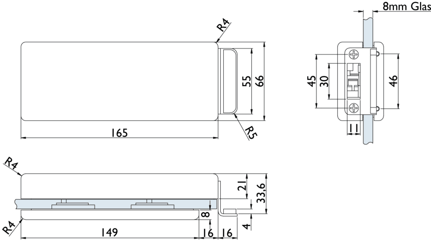 Glastür-Gegenkasten 6084 GK - Genova, mit Anschlagwinkel, Oberfl. 60 (Edelstahl matt)