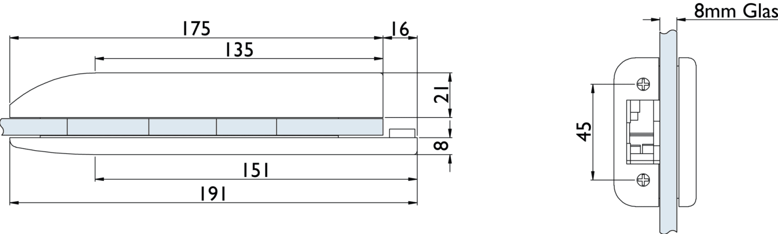Glastür-Gegenkasten 6024 GKP - Siena, mit durchgehender Anschlagplatte, Oberfl. F1 (silberfarben eloxiert)