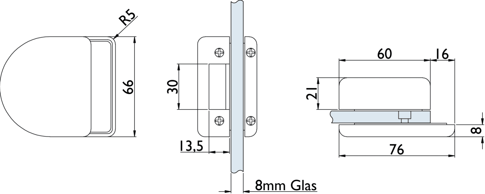 Glastür-Gegenkasten 6014 GKS - Venezia, kurze Ausführung, mit durchgehender Anschlagplatte, Oberfl. F1 (silberfarben eloxiert)