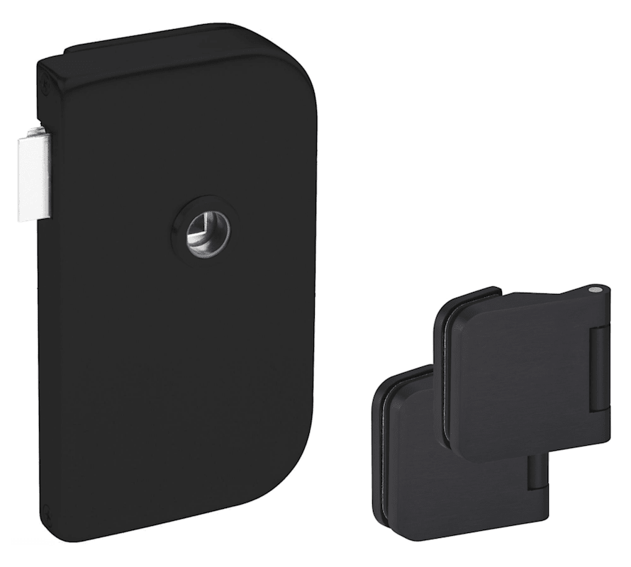 Glastür-Schlosskasten 6031 OL - Roma, ohne Lochung - DIN rechts, inkl. Bandpaar 6315, Oberfl. 74 (Classic Black, ähnl. RAL 9005)