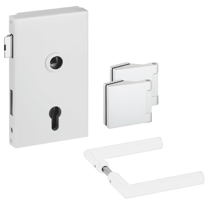 Glastür-Schlosskasten 6053 PZ - Molina, PZ gelocht - DIN links, inkl. Bandpaar 6325, und Drückerpaar 1802, Oberfl. 41 (weiß ähnlich RAL 9016)