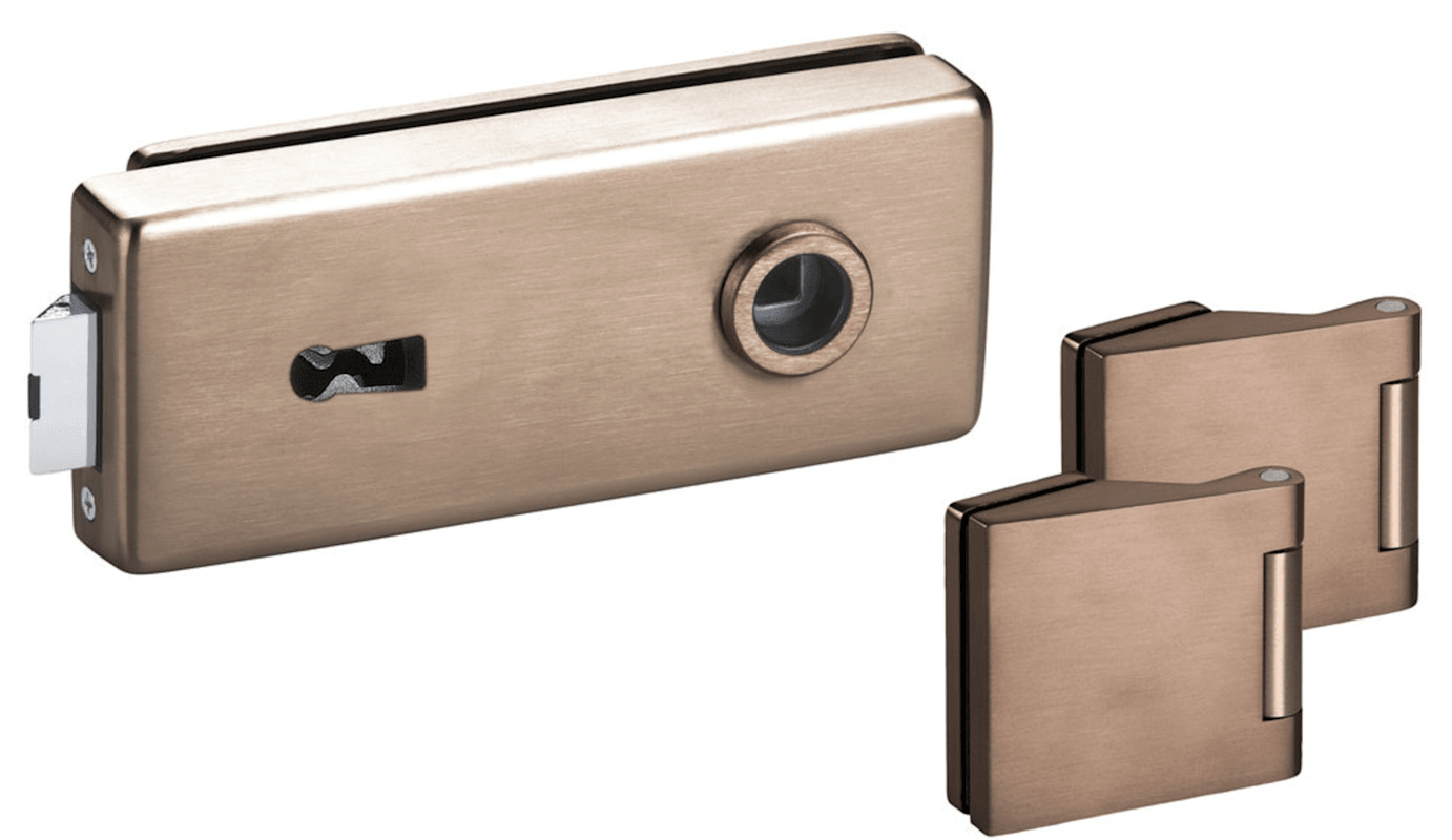Glastür-Schlosskasten 6082 BB - Genova, Buntbart gelocht (inkl. 1 Schlüssel), mit Bandpaar 6325, Oberfl. 71 (Bronzefarben matt)