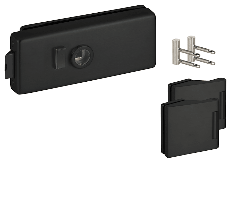 Glastür-Schlosskasten 6086 F BAD - Genova Verstellbar Universell Ls/Rs-mit rot/weiß Anzeige inkl. Bandpaar 6325 & Rahment. Holzzarge Oberfl. 74 (Classic Black, ähnl. RAL 9005)