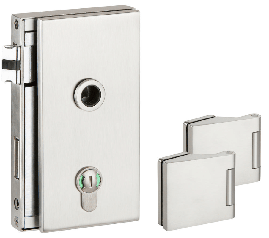 Glastür-Schlosskasten 6056 BAD - Molina, mit Bad Verriegelung rot/grün - DIN links, inkl. Bandpaar 6325-20, Oberfl. 20 (Edelstahlfarben)