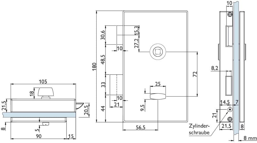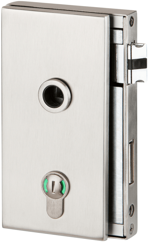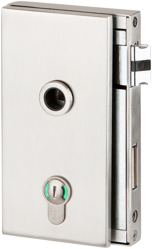 Glastür-Schlosskasten 6056 BAD - Molina, mit Bad Verriegelung rot/grün - DIN rechts, Oberfl. 60 (Edelstahl matt)