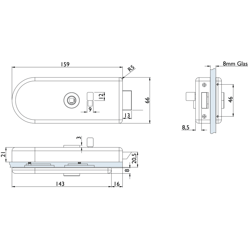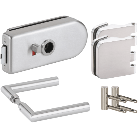 Glastür-Schlosskasten 6016 BAD - Venezia, Verstellbar Universell Ls/Rs-mit rot/weiß Anzeige, inkl. Bandpaar 6315-20 & Rahment. Holzzarge, und Drückerpaar 1802-60, Oberfl. 20 (Edelstahlfarben)