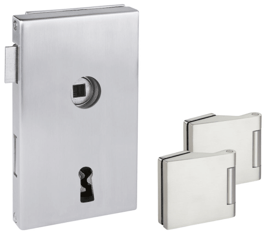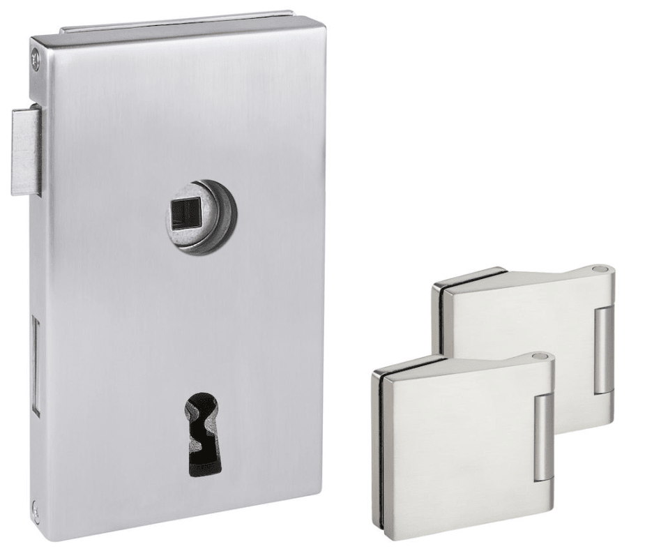 Glastür-Schlosskasten 6052 BB - Molina, Buntbart gelocht (inkl. 1 Schlüssel) - DIN rechts, inkl. Bandpaar 6325-20, Oberfl. 20 (Edelstahlfarben)