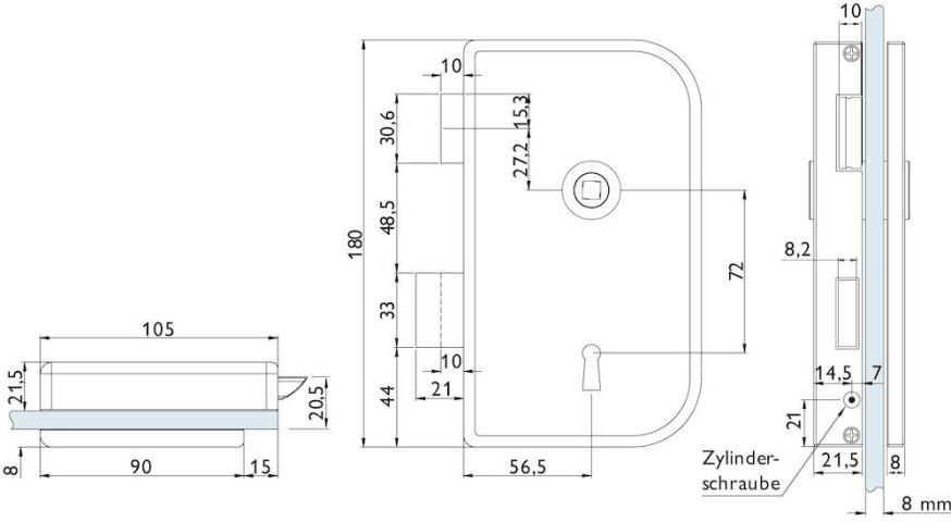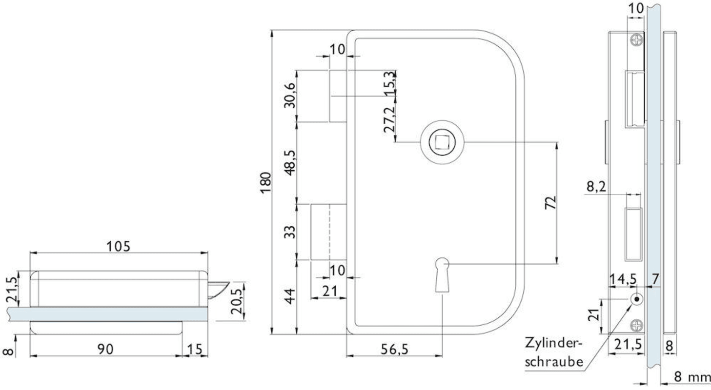 Hermat Ganzglastürschloss 6032/6315,BB,8mm,DL,ER,FlüFA