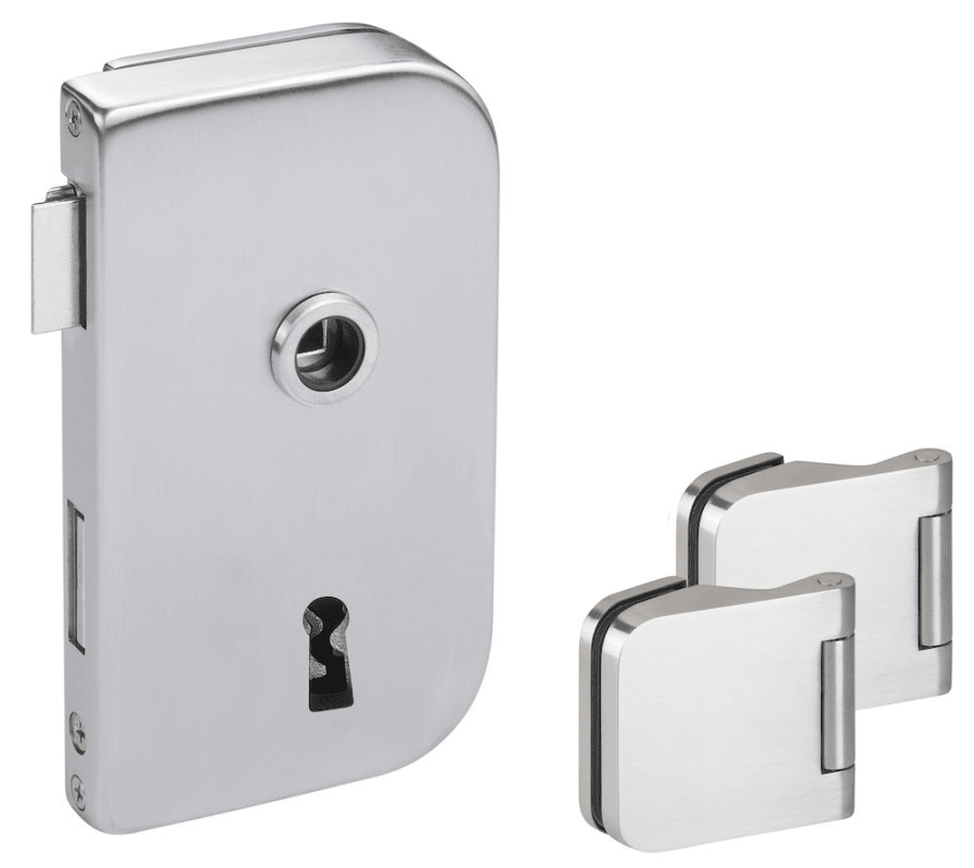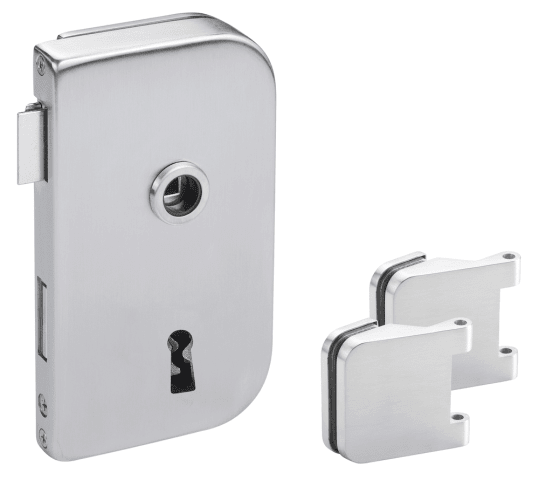 Glastür-Schlosskasten 6032 BB - Roma, Buntbart gelocht (inkl. 1 Schlüssel) - DIN rechts, inkl. Bandpaar 6315, Oberfl. 60 (Edelstahl matt)