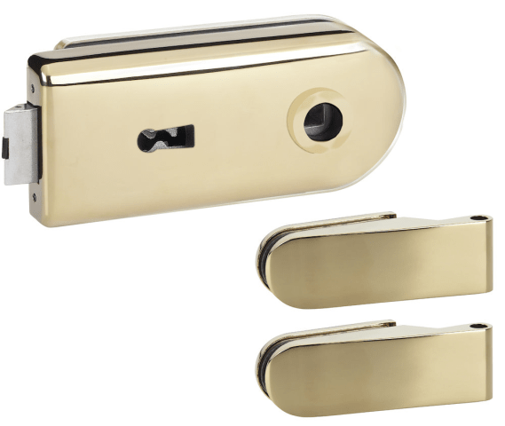 Glastür-Schlosskasten 6012 BB - Venezia, Buntbart gelocht (inkl. 1 Schlüssel), inkl. Bandpaar 6215, Oberfl. 18 (PVD Messingfarben)