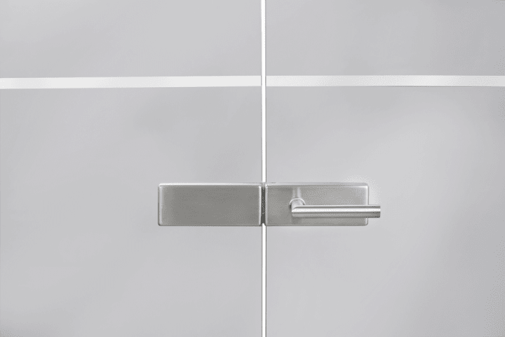 Glastür-Schlosskasten 6081 BIC OL - Genova, ohne Lochung, Einsatz Oberfl. 61 (Edelstahl poliert), Oberfl. F1 (silberfarben eloxiert)
