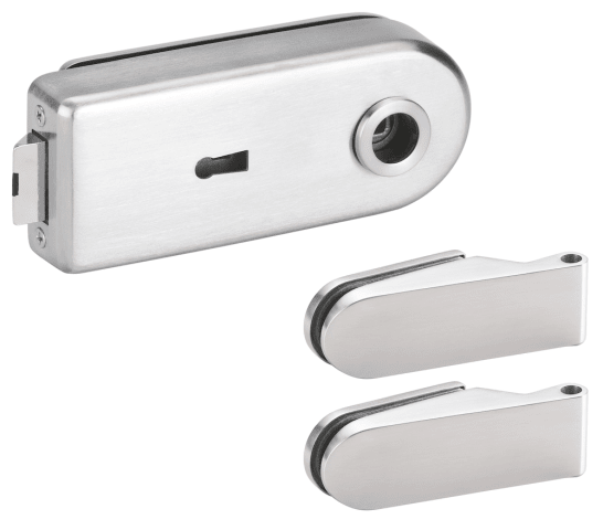 Glastür-Schlosskasten 6762 L BB - BASIC Round, Buntbart gelocht (inkl. 1 Schlüssel), inkl. Bandpaar 6215, Oberfl. 60 (Edelstahl matt)