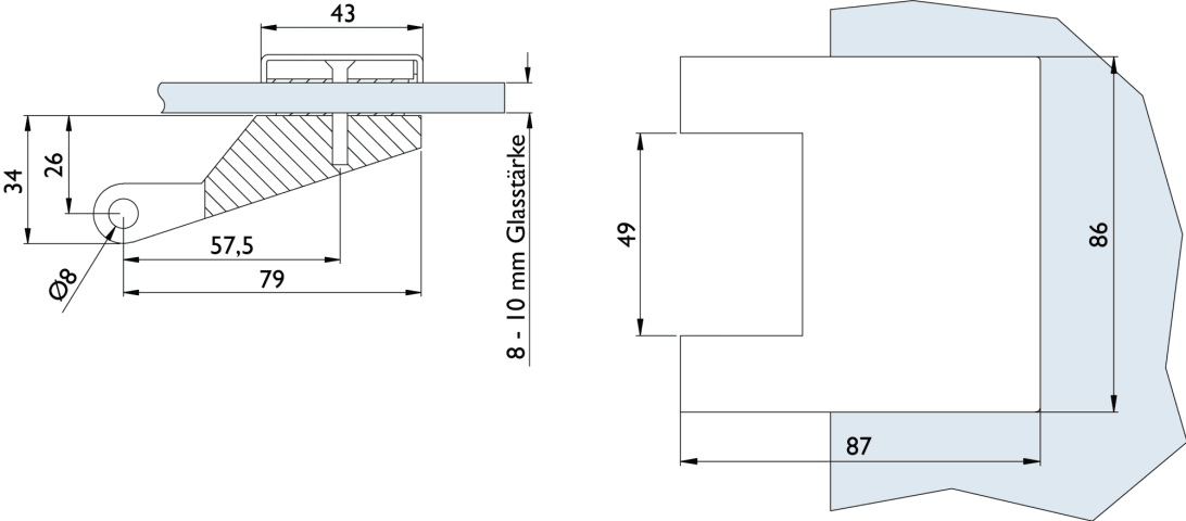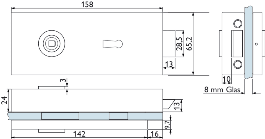 Glastür-Schlosskasten 6772 L BB - BASIC Square, Buntbart gelocht (inkl. 1 Schlüssel), inkl. Bandpaar 6325-60, Oberfl. 60 (Edelstahl matt)