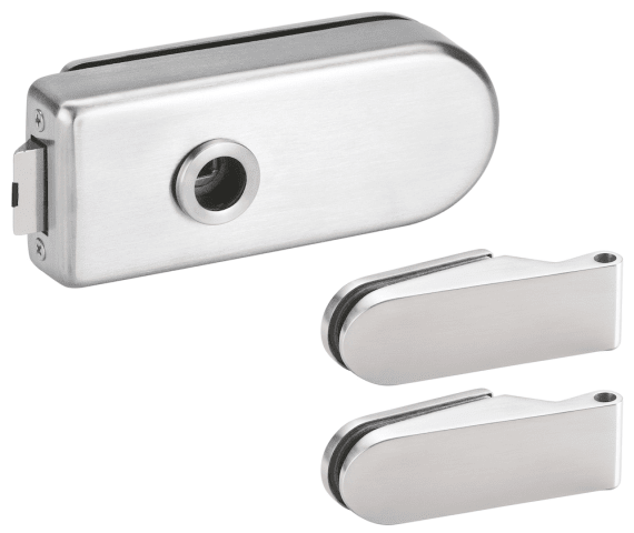Glastür-Schlosskasten 6761 L OL - BASIC Round, ohne Lochung, inkl. Bandpaar 6215, Oberfl. 60 (Edelstahl matt)