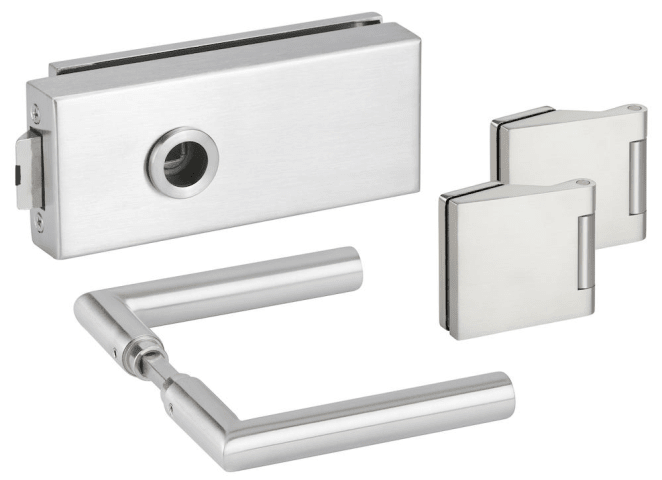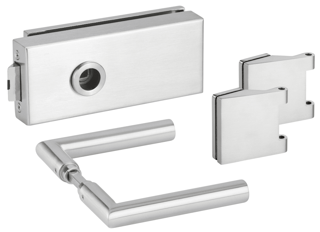 Glastür-Schlosskasten 6771 L OL - BASIC Square, ohne Lochung, inkl. Bandpaar 6325, und Drückerpaar 1802-60, Oberfl. 60 (Edelstahl matt)