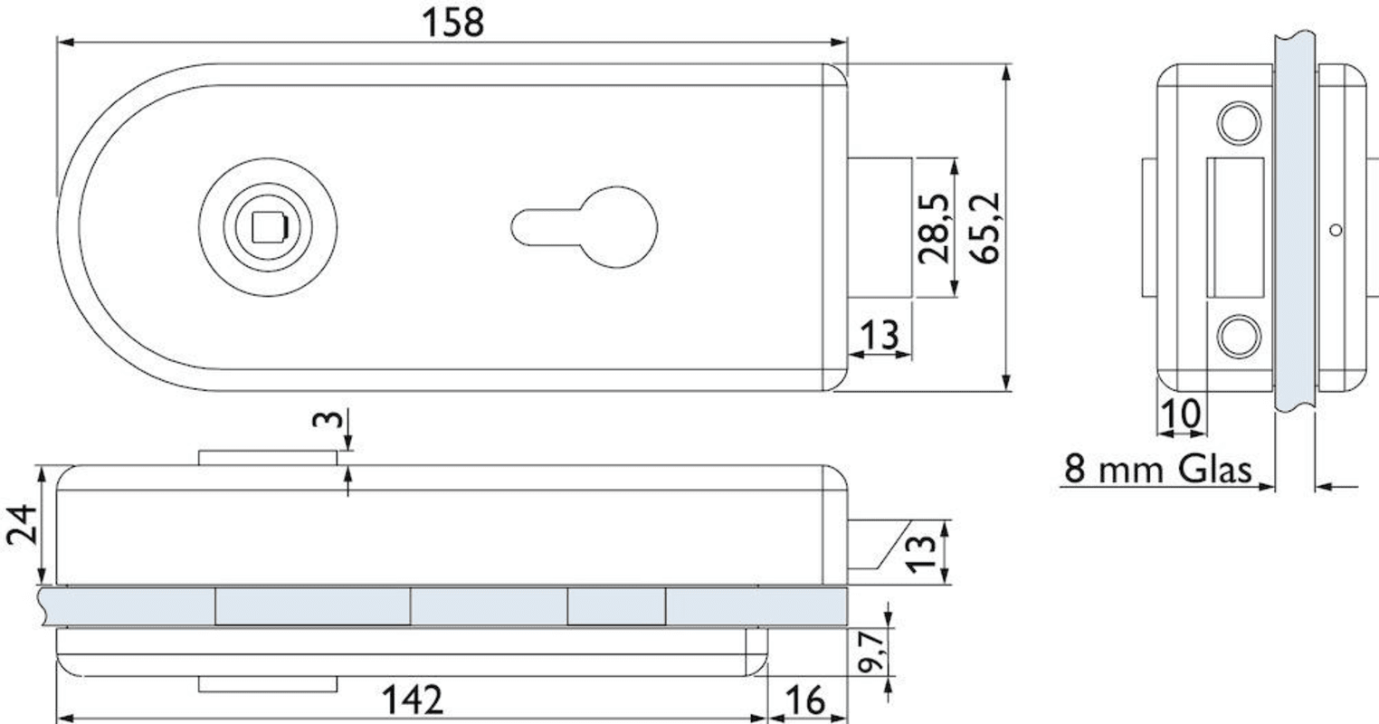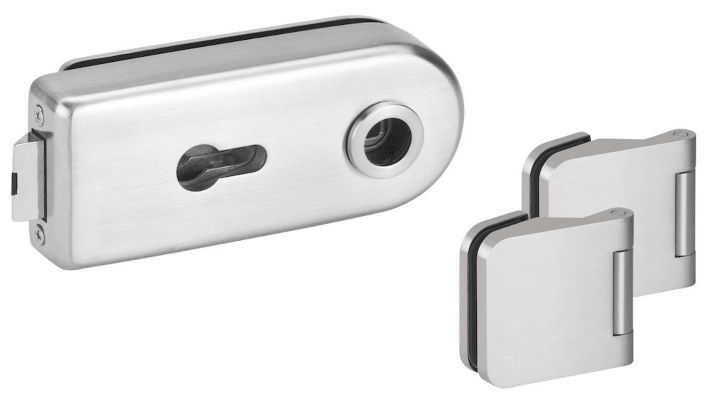 Glastür-Schlosskasten 6763 L PZ - BASIC Round, PZ gelocht, inkl. Bandpaar 6315-20, Oberfl. 20 (Edelstahlfarben)