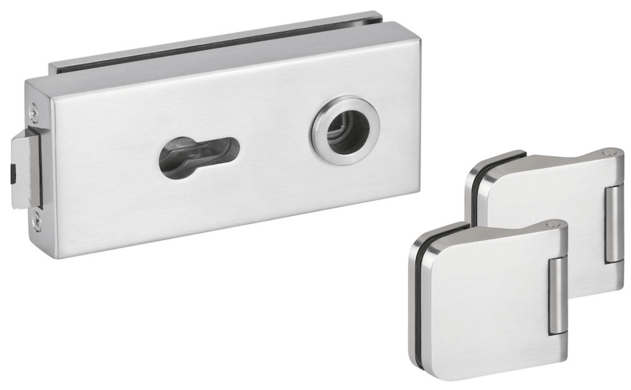 Glastür-Schlosskasten 6773 L PZ - BASIC Square, PZ gelocht, inkl. Bandpaar 6315.P, Oberfl. 60 (Edelstahl matt)