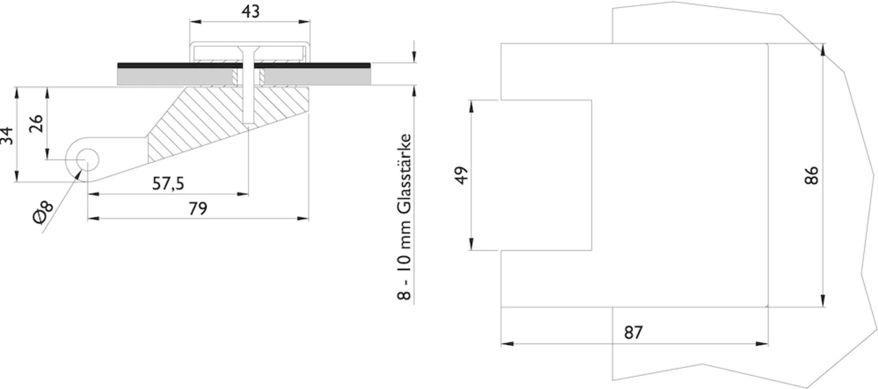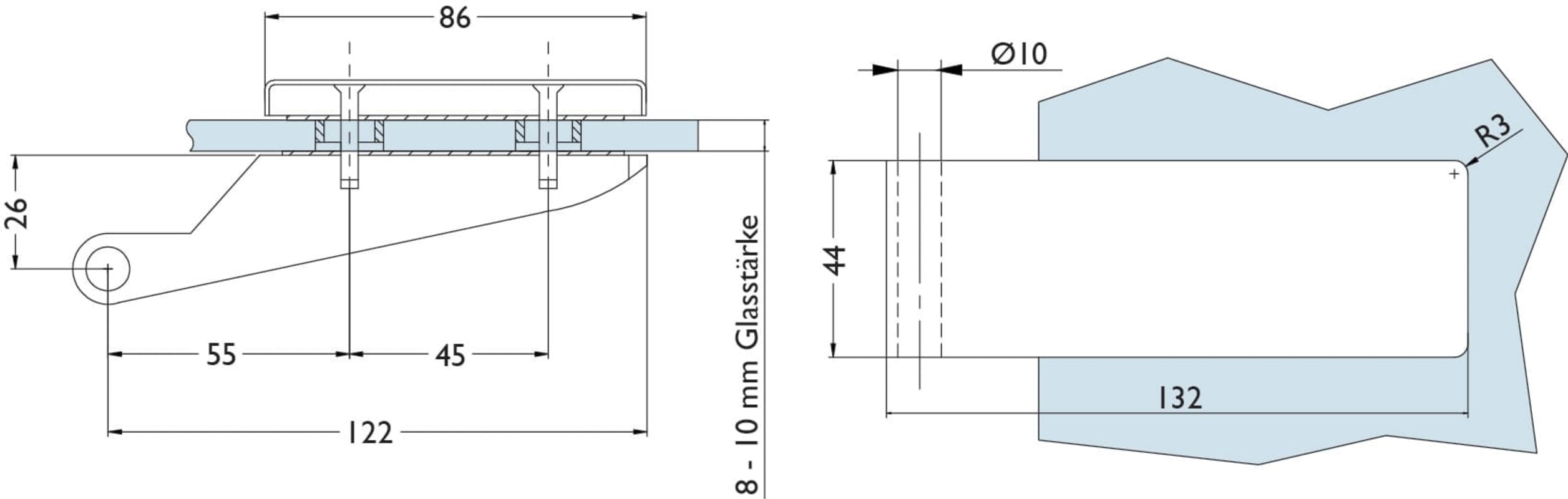 Glastür-Schlosskasten 6081 OL - Genova, ohne Lochung, inkl. Bandpaar 6225, Oberfl. F1 (silberfarben eloxiert)