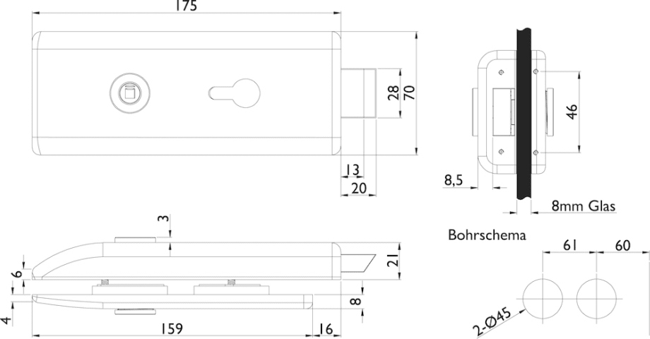 Glastür-Schlosskasten 6021 OL - Siena, ohne Lochung, inkl. Bandpaar 6315, Oberfl. 60 (Edelstahl matt)