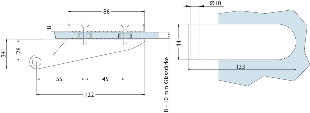 Glastür-Schlosskasten 6011 OL - Venezia, ohne Lochung, inkl. Bandpaar 6215-20, Oberfl. 20 (Edelstahlfarben)