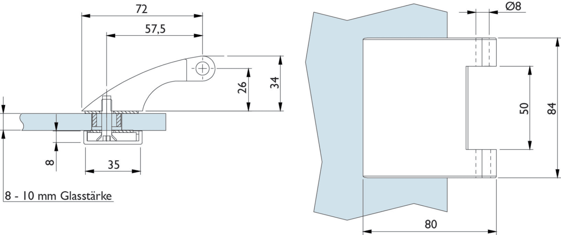 Glastür-Schlosskasten 6143 PZ - Bari, PZ gelocht, inkl. Bandpaar 6306-20 & Rahment. Holzzarge, Oberfl. 20 (Edelstahlfarben)