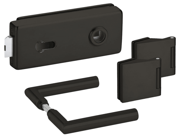 Glastür-Schlosskasten 6083 PZ - Genova, PZ gelocht, mit Bandpaar 6325, und Drückerpaar 1802-60, Oberfl. 72 (Smoke Black)