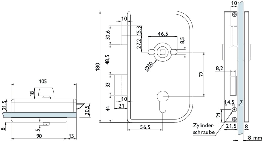 Hermat Ganzglastürschloss 6036.R,WC/SS,8mm,DL,ER,FlüFA