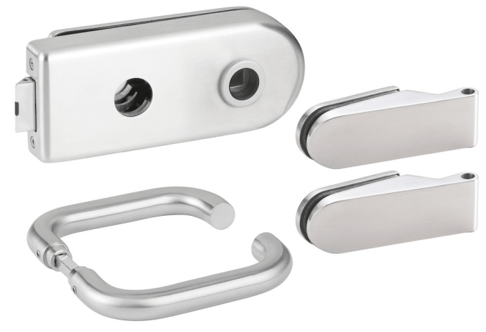 Glastür-Schlosskasten 6018 RZ - Venezia, Rundzylinder-Lochung Ø=22 mm, inkl. Bandpaar 6215, und Drückerpaar 1801-60, Oberfl. 60 (Edelstahl matt)