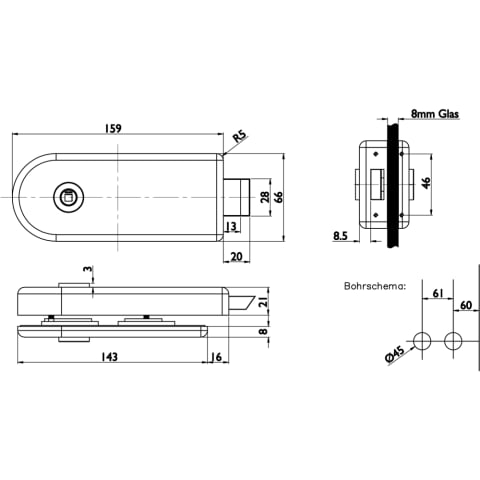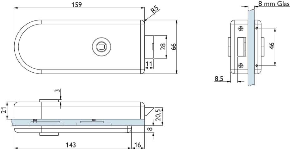 Glastür-Schlosskasten 6011 OL - Venezia, ohne Lochung, Oberfl. 61 (Edelstahl poliert)