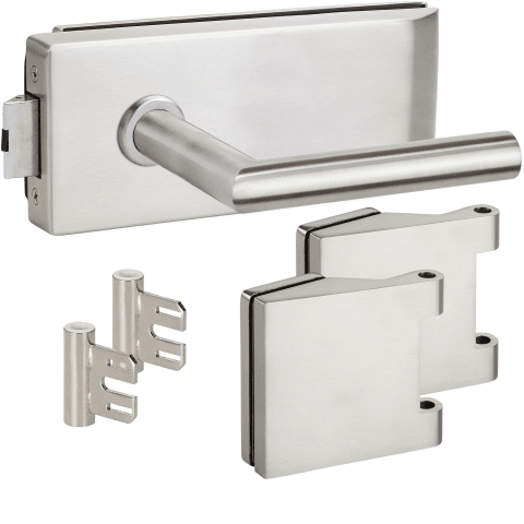 Glastür-Schlosskasten 6141 OL - Bari, ohne Lochung, inkl. Bandpaar 6325-20 & Rahment. Holzzarge, und Drückerpaar 1802-60, Oberfl. 20 (Edelstahlfarben)