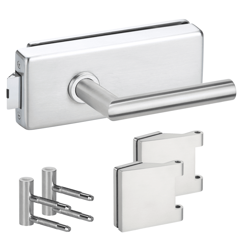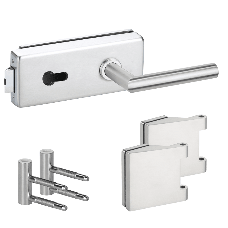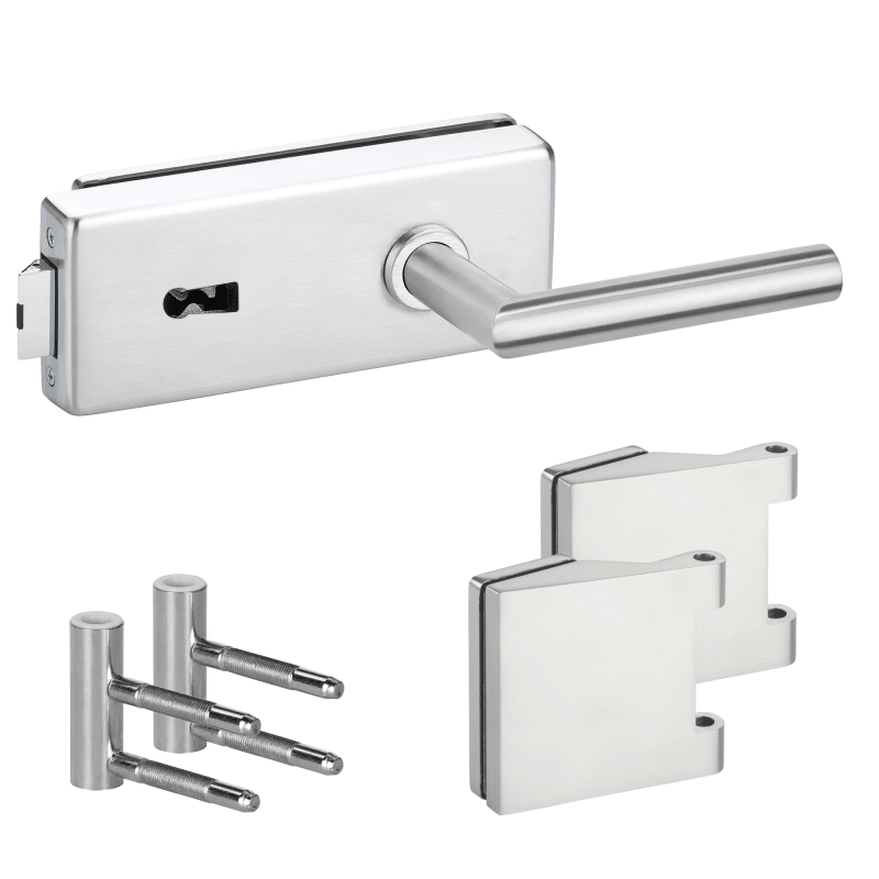 Glastür-Schlosskasten 6081 OL - Genova, ohne Lochung, inkl. Bandpaar 6325-20 & Rahment. Holzzarge, und Drückerpaar 1802-60, Oberfl. 20 (Edelstahlfarben)
