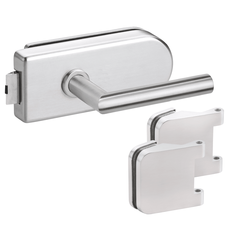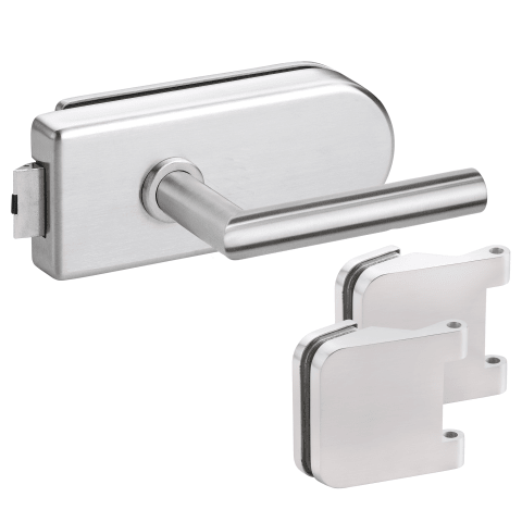 Glastür-Schlosskasten 6012 BB - Venezia, Buntbart gelocht (inkl. 1 Schlüssel), inkl. Bandpaar 6315-20 & Rahment. Holzzarge, und Drückerpaar 1802-60, Oberfl. 20 (Edelstahlfarben)