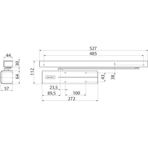 effeff Gleitschiene DC700G-E DCG-10-21N; Produkttyp: Gleitschiene; Produkttyp (Hersteller): Gleitschiene; Ausführung: mit elektromechanischer Feststellung,höhenverstellbar; Einsatzbereich: aufliegende Türschließer; Montageart: Sturzmontage Bandseite; Material: Edelstahl; Zulassung: für Feuerschutztür,für Rauchschutztür; Feststellbereich min.: 80 °; Feststellbereich max.: 130 °; Feststellung: einstellbar; Öffnungsbegrenzung: einstellbar; Höhenverstellung: 14 mm; Länge: 528 mm; Höhe: 30 mm; Tiefe: 43,5 mm; Türbreite max.: 1.400 mm; Nennspannung: 24 V; Stromart: DC; Schutzart nach DIN EN 60529: IP43; Norm: DIN SPEC 1104,EN 1155; Türart: Anschlagtür; Anzahl Türflügel: einflügelig; DIN-Richtung: DIN Links-Rechts; Farbton: silberfarbig; Oberfläche: eloxiert