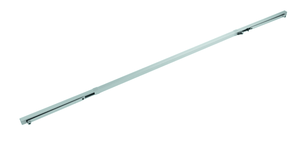 Gleitschiene mit integrierter, mechanischer Schließfolgeregelung, geprüft nach EN 1158. Schließfolgeregelung über ein von der Schließerhydraulik unabhängiges Schubstangen-Klemmsystem mit Überlastsiche