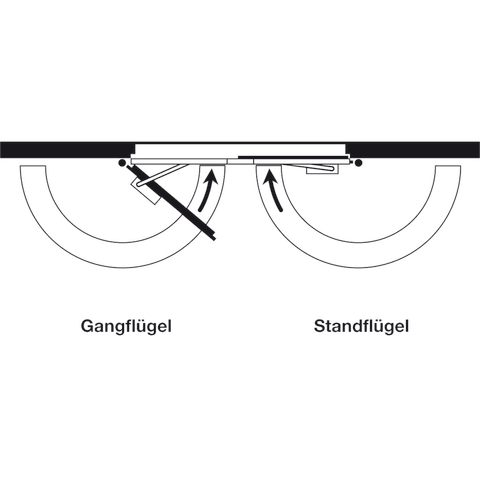 Gleitschiene mit integrierter, mechanischer Schließfolgeregelung, geprüft nach EN 1158. Schließfolgeregelung über ein von der Schließerhydraulik unabhängiges Schubstangen-Klemmsystem mit Überlastsiche