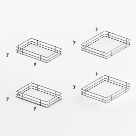 • Einhängetablare für Tragrahmen Goro• Belastbarkeit: 7 kg je vorderes Tablar, 9 kg je hinteres Tablar• HDF Boden (5 mm) weiss bzw. anthrazit• Flachdraht-Reling StahlSet besteht aus:• 2 Stück Einh