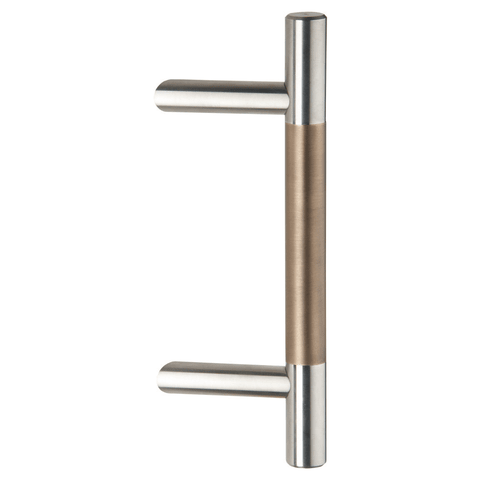Stoßgriff mit einem gelungenen Materialmix aus Edelstahl und Bronze.
