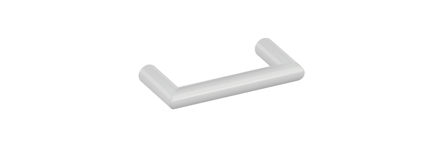 HEWI Bügelgriff 562.10.64; Material: Kunststoff; Befestigung: mit Holzschrauben; Einsatzbereich: Möbel; Farbe: grau; Farbton: lichtgrau; Länge: 74 mm; Höhe: 35 mm; Durchmesser: 10 mm; Oberfläche: hoch