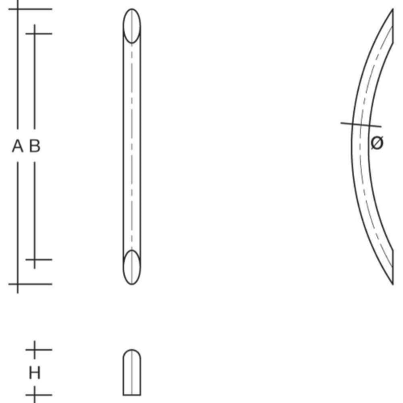 Griff aus Edelstahl, feinmatt poliert, Durchmesser 30 mm, nach vorn gebogen. Die Befestigung bitte separat bestellen. Art.-Nr. 0305717 (pro Befestigungspunkt 1 Stück).