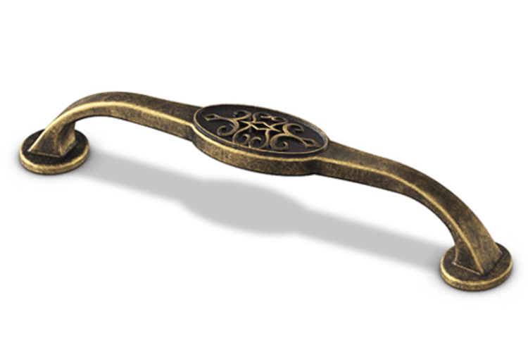 Griff Siradia, Bohrabstand 128 mm, L 149 mm, B 23 mm, H 29 mm, Messing Optik antik