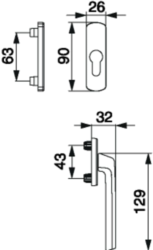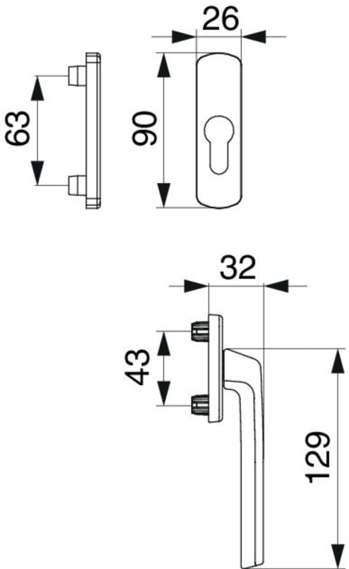 Griff- und Rosettengarnitur Harmony Außengriff nieder PZ mit Nocken 12 ohne Stift VK7 verkehrsweiß RAL 9016
