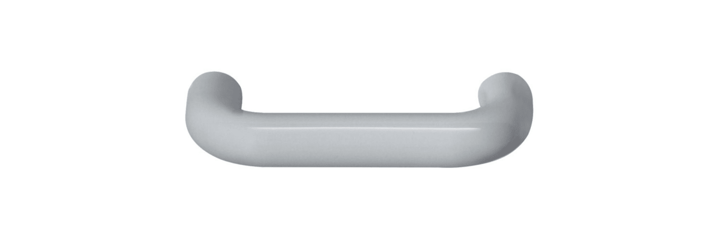 HEWI Bügelgriff 111G; Material: Kunststoff; Befestigung: mit Holzschrauben; Einsatzbereich: Möbel; Farbe: grau; Farbton: felsgrau; Länge: 135 mm; Höhe: 55 mm; Durchmesser: 20 mm; Oberfläche: glanz; Mo