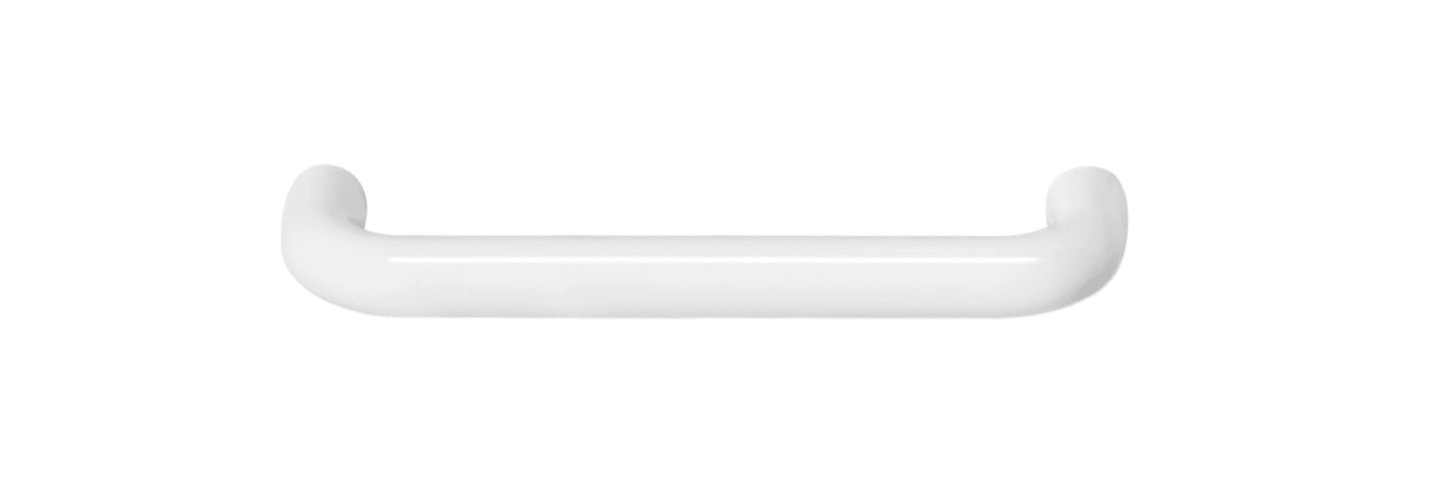 HEWI Bügelgriff 548.13.128; Material: Kunststoff; Befestigung: mit Holzschrauben; Einsatzbereich: Möbel; Farbe: weiß; Farbton: signalweiß; Länge: 141 mm; Höhe: 38 mm; Durchmesser: 13 mm; Oberfläche: d