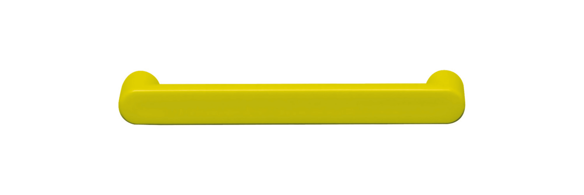 HEWI Bügelgriff 548.17.128; Material: Kunststoff; Befestigung: mit Holzschrauben; Einsatzbereich: Möbel; Farbe: gelb; Farbton: senfgelb; Länge: 144 mm; Höhe: 26 mm; Durchmesser: 16 mm; Oberfläche: dur