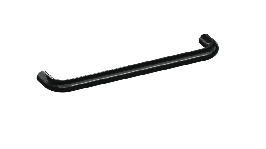 HEWI Bügelgriff 548.13.192; Material: Kunststoff; Befestigung: mit Holzschrauben; Einsatzbereich: Möbel; Farbe: schwarz; Farbton: tiefschwarz; Länge: 205 mm; Höhe: 38 mm; Durchmesser: 13 mm; Oberfläch